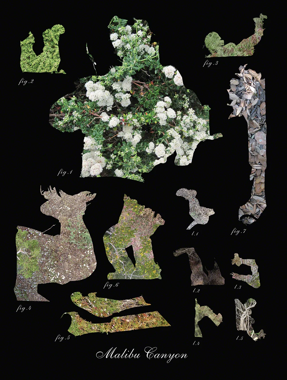 In these prints, I insert the land I travel through into images of the shadows I leave. I’ve always loved old botanical prints and here I’ve used images of my shadow to create a taxonomy of my presence.
